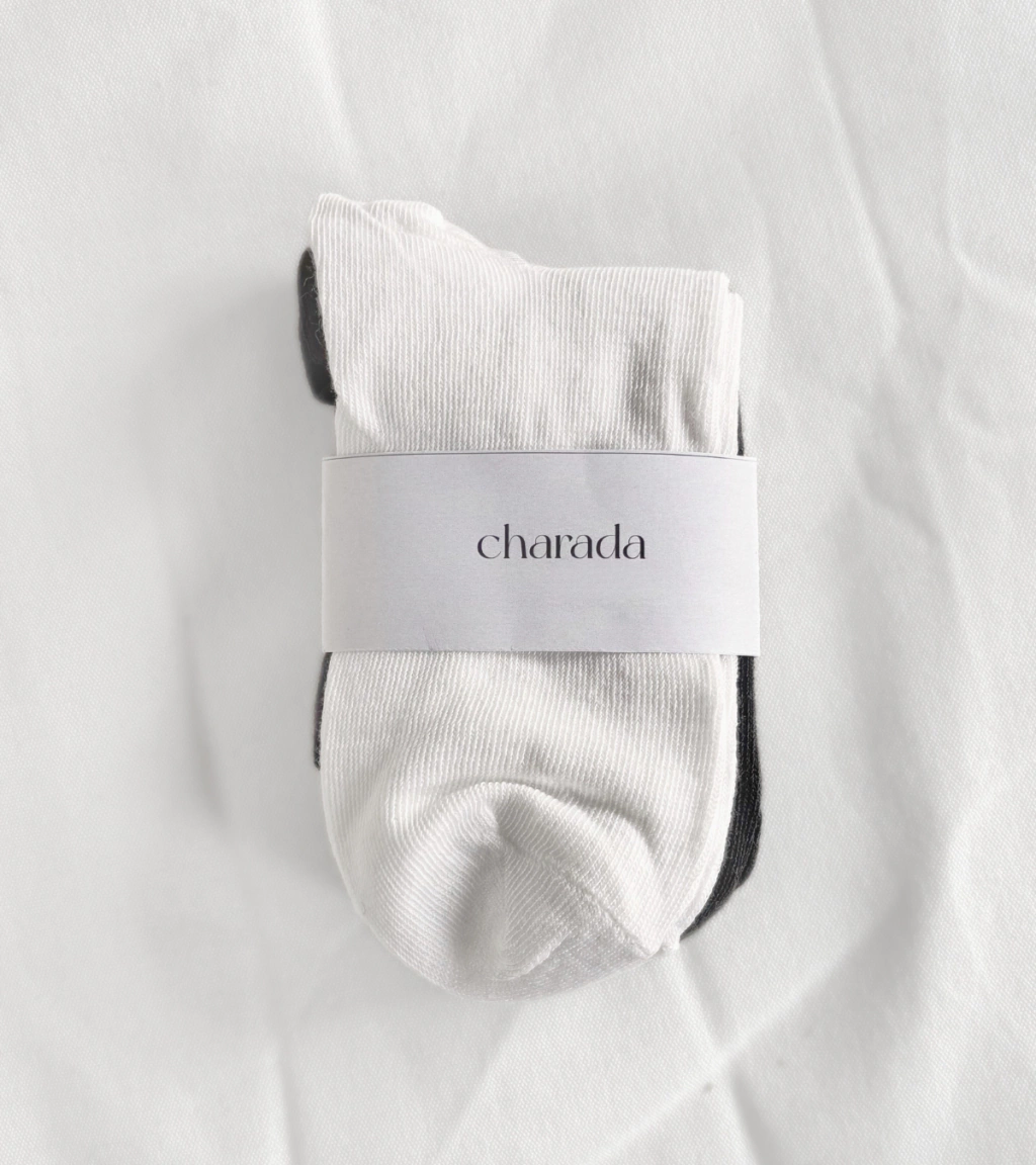 Pack x2 Medias de caña media, estilo Crew. Una blanca y una negra.